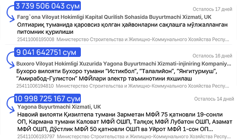 Parametrlarni o‘zingizga moslashtirasiz: qiziqtirgan sohangizni (qurilish, IT yoki uskunalar yetkazib berish) va viloyatingizni (shahar, viloyat yoki butun mamlakat) tanlaysiz. Bu faqat sizga mos keladigan lotlarni ko‘rish imkonini beradi.